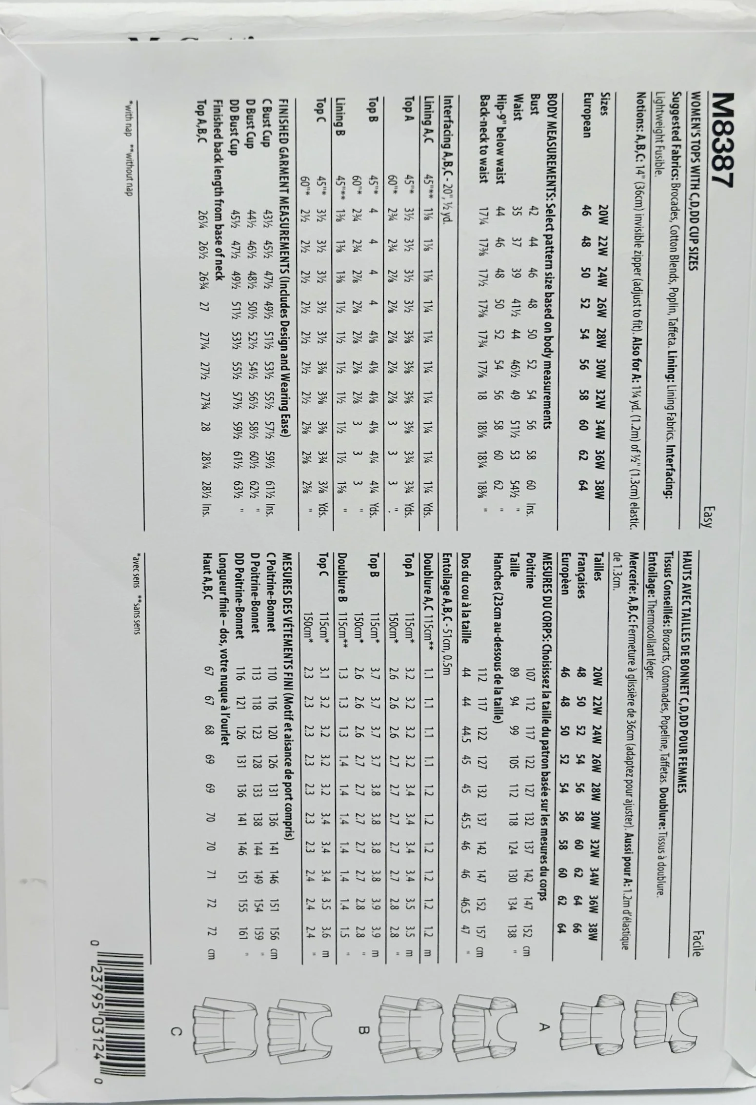1. Sewing pattern size XS to L