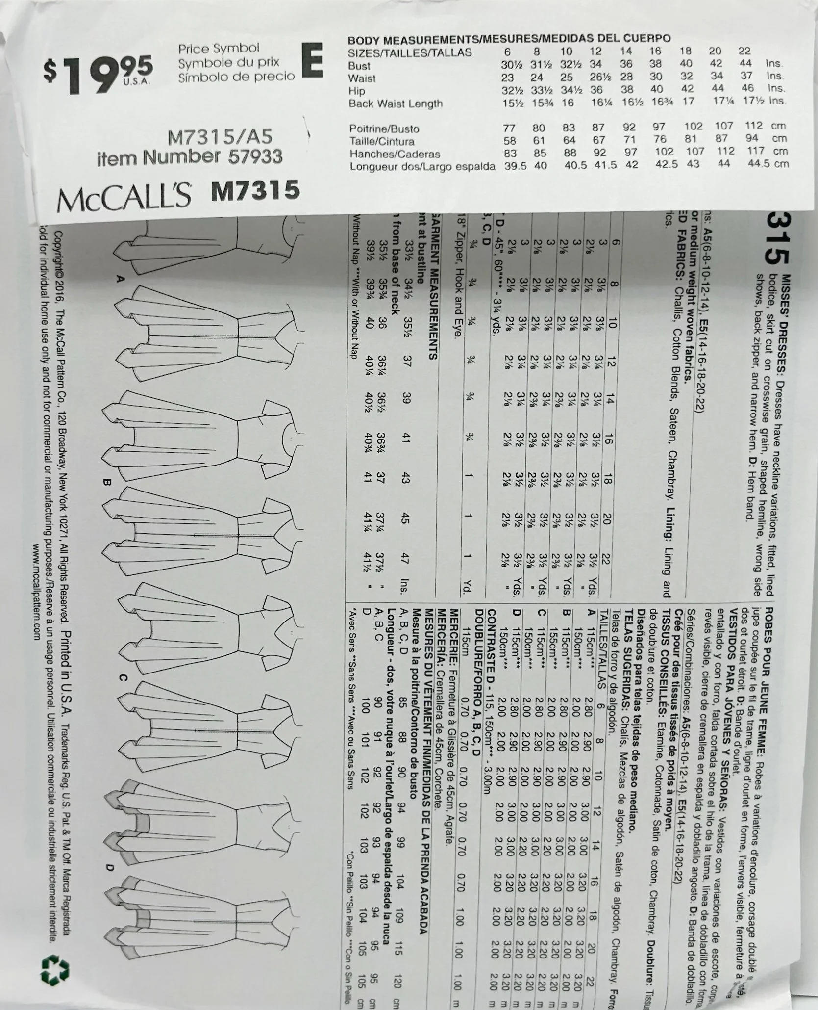 Patterns › McCall’s M6911 - Women's corset, bolero and bustle skirt costume pattern. Size 14-22 Image 1 of 2 Image 2 of 2 McCall’s M6911 - Women's corset, bolero and bustle skirt costume pattern. Size 14-22 $8.99 McCall’s sewing patter n M6911. Size E5 (14-16-18-20-22)Women’s period costume - coset, bolero jacket and bustle skirt . Add To Cart Added! McCall’s sewing patter n M6911. Size E5 (14-16-18-20-22)Women’s period costume - coset, bolero jacket and bustle skirt . Reviews Reviewer Name Review Date Star Rating Description Posted on Etsy Product Show More You Might Also Like Annie Dress Pattern $5.99 McCall pattern M7315, Women's dress $4.99 McCall pattern M8203, Women's jumper $4.99 Miranda Dress Pattern $5.99 Moto Pinafore Pattern - for tweens/teens $5.99